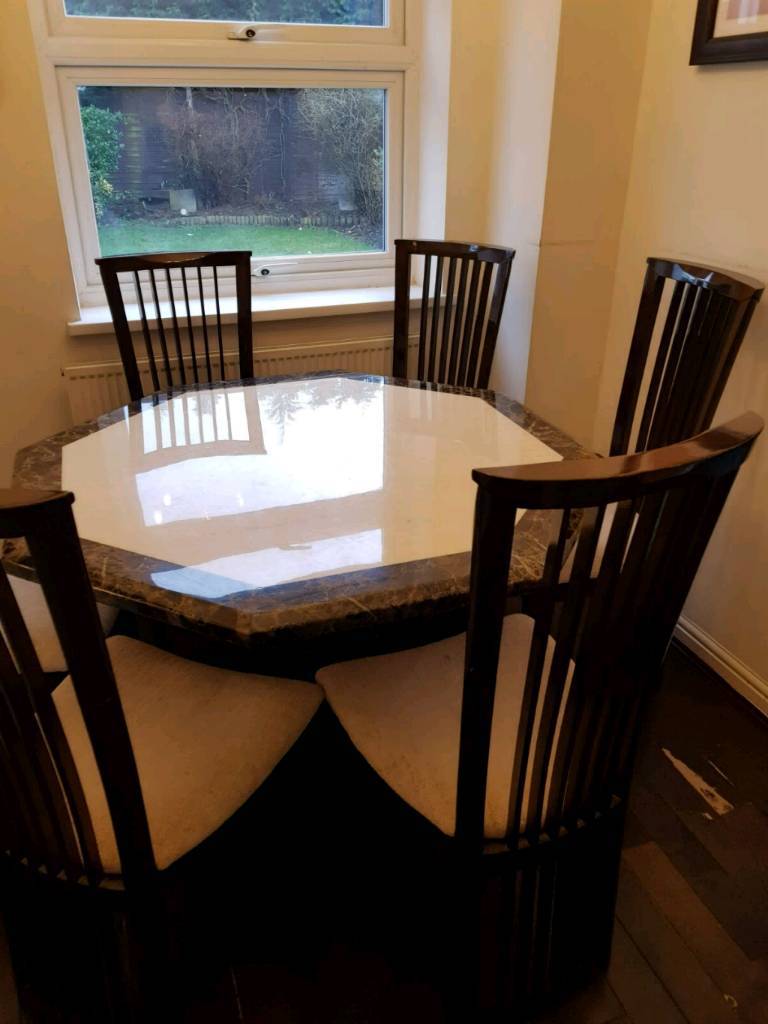 Marble Dining Table And 6 Chairs Uk - White grey veining marble dining table & 6 chairs - Homegenies / Stunning grey marble dining table and 6 chairs.